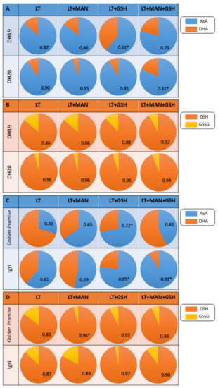 - Foyer, C.H.; Noctor, G. Ascorbate and glutathione: The heart of the redox hub. Plant Physiol. 2011, 155, 2–18. [Google Scholar] [CrossRef] [PubMed] [Green Version]
