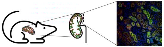 Uptake of A1M and the somatostatin analog octreotate was shown to co-localize on different levels [83]. First, SPECT showed uptake of both molecules in the kidney. Second, autoradiography indicated cortical uptake of both octreotate and A1M. Lastly, colocalization of A1M (green), octreotate (red), and DAPI (blue) was seen in the kidney cortex (magnification 20×).