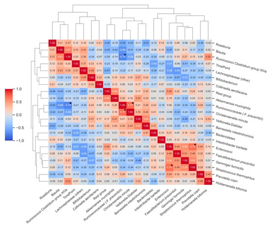 3.3. Characterization of Bacterial Clusters before and after Supplementation