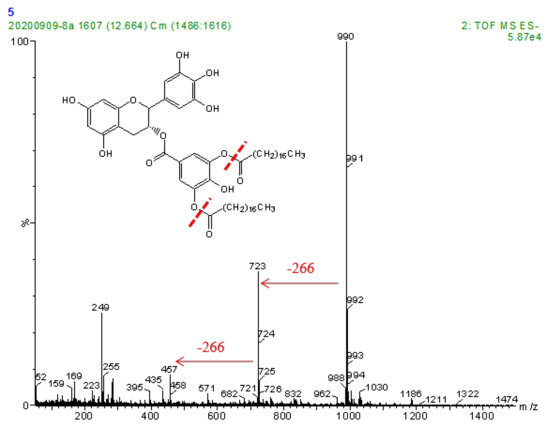 3.2. Identification and Structure Analysis of EGCG Stearyl Derivatives