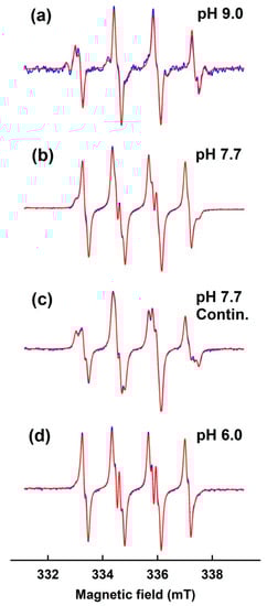 3.2. Simulation of EPR Spectra of pH-Dependent BMPO Adducts