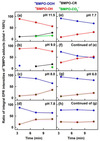 3.3. Comparison of pH-Dependent BMPO Adduct Spectra of BMPO−KO2 Interaction