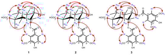) correlations of compounds 1–3.