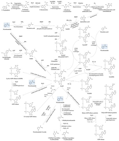 2.2. Metabolisms of NAD+ and Nicotinamide
