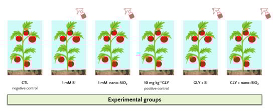 In order to investigate the possible ameliorating role of Si nutrition on GLY-induced toxicity in S. lycopersicum, plants were divided into different experimental groups (Figure 1):