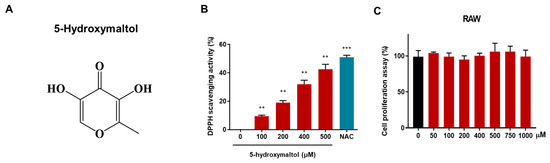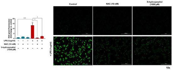 3.7. 5-Hydroxymaltol Decreased LPS-Induced ROS Production in RAW 264.7 Cells