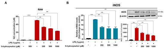 3.3. Effect of 5-Hydoxylmaltol on NO Production and Inducible NO Synthase Expression in RAW 264.7 Macrophage Cells