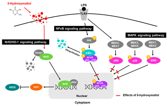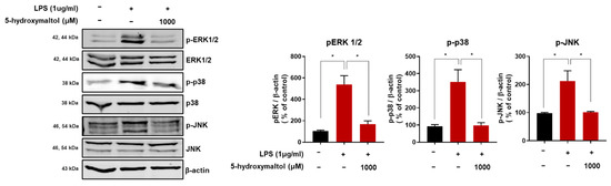 3.6. 5-Hydroxymaltol Inhibited LPS-Stimulated MAPK Activation in RAW 264.7 Cells