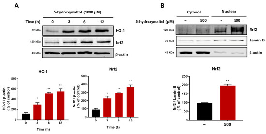 3.8. 5-Hydroxymaltol Increased Protein Exprerssion of HO-1 and Nrf2 in RAW 264.7 Cells