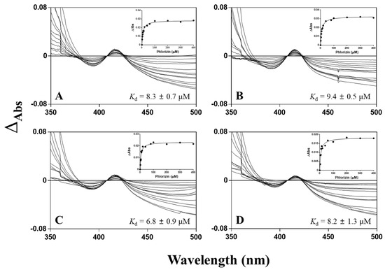 3.4. Spectral Titration of Phlorizin toward CYP102A1 Mutants