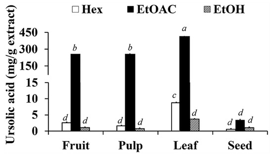 3.2. Ursolic Acid Content of C. carandas Extracts
