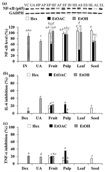 | Pulp | EtOAc | 22.6 ± 2.3 d | 2.5 ± 0.1 e | 140.9 ± 10.5 f | 103.6 ± 9.8 d | 312.3 ± 45.7 a–c |