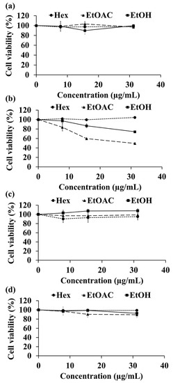 2.11. Cytotoxicity of C. carandas Extracts in Human Keratinocyte (Hacat) Cells by MTT Colorimetric Technique