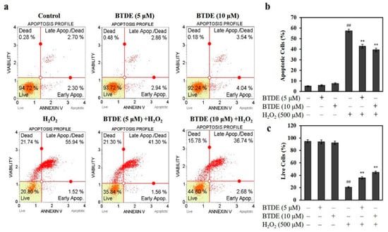 3.3. BTDE Ameliorates H2O2-Induced Cell Apoptosis