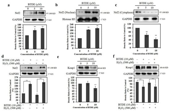 3.5. BTDE Affects the Expression of Nrf2 and Keap1 in HaCaT Cells