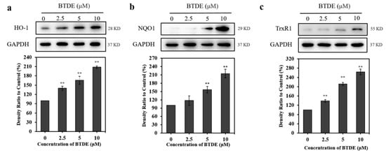 3.6. BTDE Increases the Expression of Nrf2-Mediated Proteins