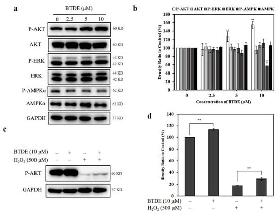 3.7. BTDE Activates the AKT Signaling Pathway