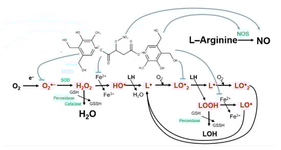 A generalized scheme of the proposed mechanism of the hybrid molecule B6NO action on oxidative processes and the intracellular nitrogen monoxide formation is shown in Figure 9.