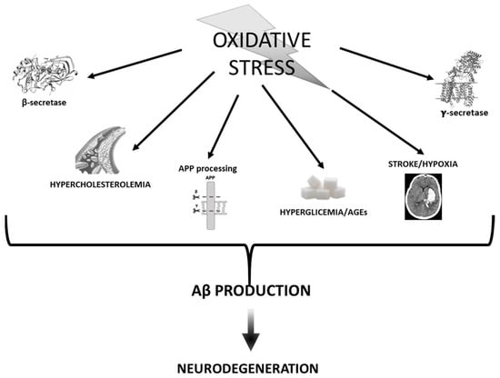 Other authors also demonstrated a correlation between the induction of OS and the increase in γ-secretase cleavage on APP [118,119,120,121]. Given that OS can mediate both γ-secretase and BACE1 activities, OS could be considered the molecular link between β-secretase and γ-secretase.