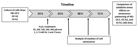 - Wang, Z.; Wei, D.; Xiao, H. Methods of cellular senescence induction using oxidative stress. Methods Mol. Biol. 2013, 1048, 135–144. [Google Scholar] [CrossRef] [PubMed]