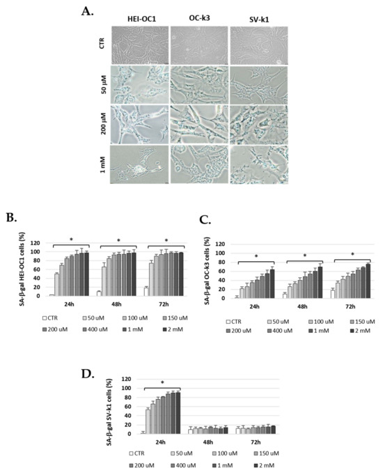 3.3. H2O2 Increase SA β-Galactosidase Activity in Cells