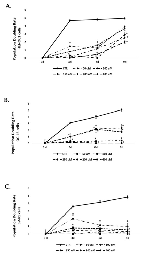 3.4. Population Doubling Rate Post H2O2 Treatments