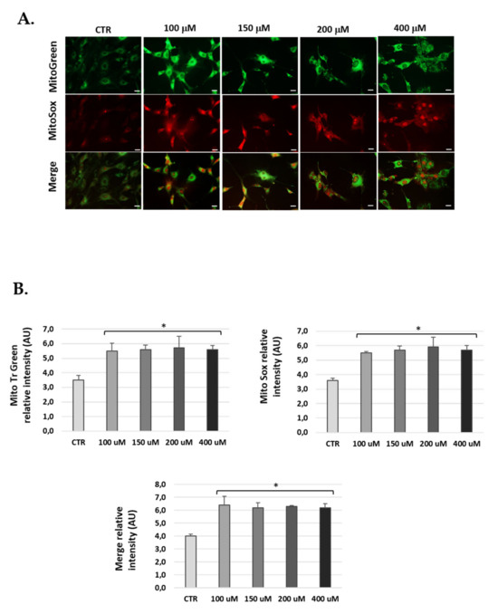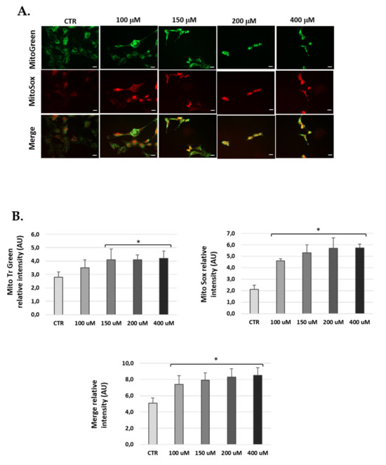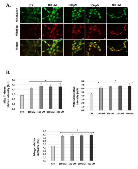 3.5. H2O2-Treatment Induced Mitochondrial ROS in Cells