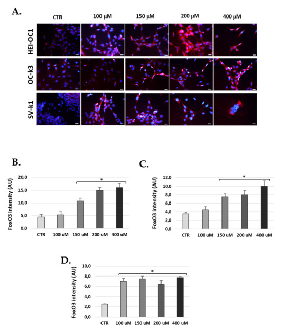 3.8. Foxo3 Increased in Cells Post H2O2 Treatments