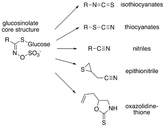 - Nguyen, V.P.T.; Stewart, J.; Lopez, M.; Ioannou, I.; Allais, F. Glucosinolates: Natural occurrence, biosynthesis, accessibility, isolation, structures, and biological activities. Molecules 2020, 25, 4537. [Google Scholar] [CrossRef]