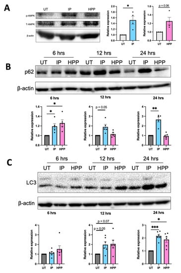 3.6. HPP and IP Activate Autophagy-Related Proteins