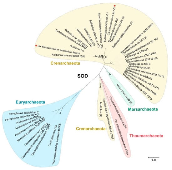 - Yamano, S.; Sako, Y.; Nomura, N.; Maruyama, T. A Cambialistic SOD in a Strictly Aerobic Hyperthermophilic Archaeon, Aeropyrum Pernix. J. Biochem. 1999, 126, 218–225. [Google Scholar] [CrossRef]