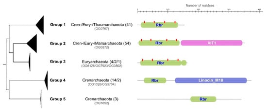 - Cardenas, J.P.; Quatrini, R.; Holmes, D.S. Aerobic Lineage of the Oxidative Stress Response Protein Rubrerythrin Emerged in an Ancient Microaerobic, (Hyper)Thermophilic Environment. Front. Microbiol. 2016, 7, 1822. [Google Scholar] [CrossRef] [PubMed] [Green Version]