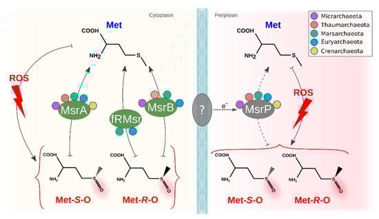 - Maupin-Furlow, J.A. Methionine Sulfoxide Reductases of Archaea. Antioxidants 2018, 7, 124. [Google Scholar] [CrossRef] [PubMed] [Green Version]