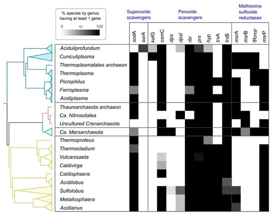 Chicago/Turabian StyleNeira, Gonzalo, Eva Vergara, Diego Cortez, and David S. Holmes. 2022. "A Large-Scale Multiple Genome Comparison of Acidophilic Archaea (pH ≤ 5.0) Extends Our Understanding of Oxidative Stress Responses in Polyextreme Environments" Antioxidants 11, no. 1: 59. https://doi.org/10.3390/antiox11010059
