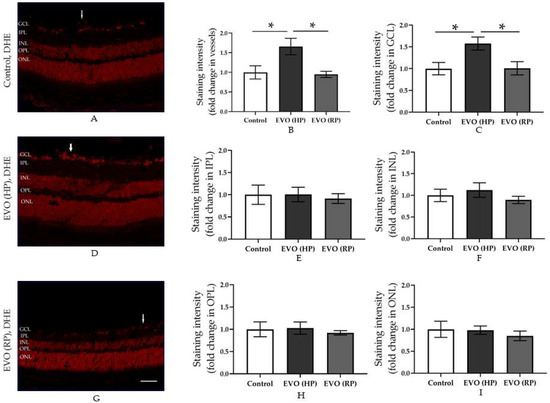 - Gericke, A.; Mann, C.; Zadeh, J.K.; Musayeva, A.; Wolff, I.; Wang, M.; Pfeiffer, N.; Daiber, A.; Li, H.; Xia, N.; et al. Elevated Intraocular Pressure Causes Abnormal Reactivity of Mouse Retinal Arterioles. Oxid. Med. Cell. Longev. 2019, 2019, 9736047. [Google Scholar] [CrossRef]