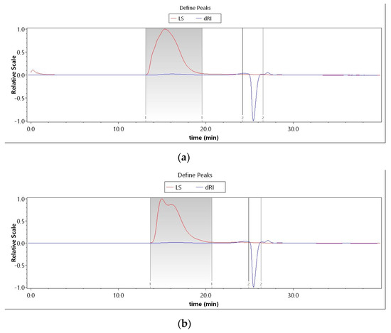 - Picton, L.; Bataille, I.; Muller, G. Analysis of a complex polysaccharide (gum arabic) by multi-angle laser light scattering coupled on-line to size exclusion chromatography and flow field flow fractionation. Carbohydr. Polym. 2000, 42, 23–31. [Google Scholar] [CrossRef]