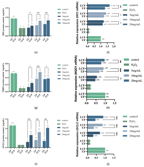 3.8. Effects of UF and LCF on Nrf2/Keap1 Signaling Pathway