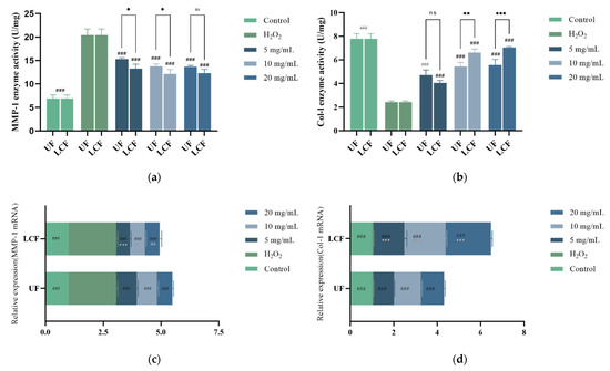 3.11. Effects of UF and LCF on Content and Expression Level of MMP-1 and COL-1