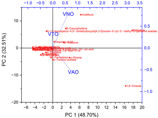 Principal Component Analysis of tested essential oil’s chemical constituents.