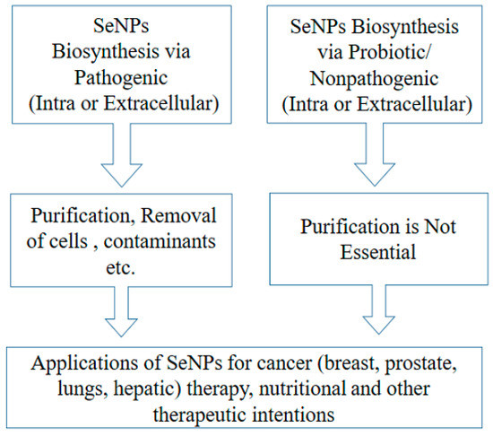 Ullah, A.; Mu, J.; Wang, F.; Chan, M.W.H.; Yin, X.; Liao, Y.; Mirani, Z.A.; Sebt-e-Hassan, S.; Aslam, S.; Naveed, M.; et al. Biogenic Selenium Nanoparticles and Their Anticancer Effects Pertaining to Probiotic Bacteria—A Review. Antioxidants 2022, 11, 1916. https://doi.org/10.3390/antiox11101916