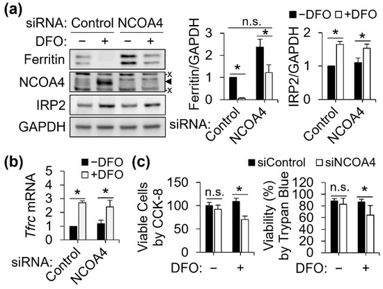 - Mancias, J.D.; Pontano Vaites, L.; Nissim, S.; Biancur, D.E.; Kim, A.J.; Wang, X.; Liu, Y.; Goessling, W.; Kimmelman, A.C.; Harper, J.W. Ferritinophagy via NCOA4 Is Required for Erythropoiesis and Is Regulated by Iron Dependent HERC2-Mediated Proteolysis. eLife 2015, 4, e10308. [Google Scholar] [CrossRef] [PubMed]