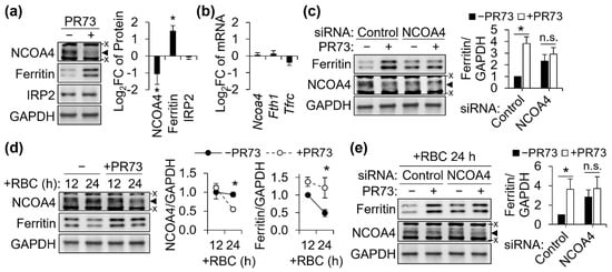 - Santana-Codina, N.; Gableske, S.; del Rey, M.Q.; Małachowska, B.; Jedrychowski, M.P.; Biancur, D.E.; Schmidt, P.J.; Fleming, M.D.; Fendler, W.; Harper, J.W.; et al. NCOA4 Maintains Murine Erythropoiesis via Cell Autonomous and Non-Autonomous Mechanisms. Haematologica 2019, 104, 1342–1354. [Google Scholar] [CrossRef] [PubMed]