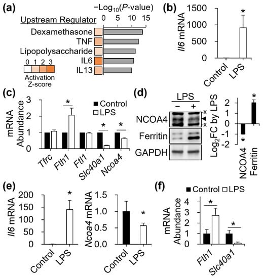 3.7. NCOA4 Repression in Mouse Macrophages and Spleen by LPS