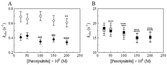 - Kissner, R.; Koppenol, W.H. Product Distribution of Peroxynitrite Decay as a Function of pH, Temperature, and Concentration. J. Am. Chem. Soc. 2001, 124, 234–239. [Google Scholar] [CrossRef] [PubMed]