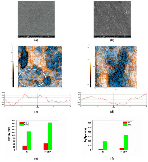 AFM analysis was made using an XE-100 microscope from Park Systems (Suwon-si, South Korea) in non-contact mode. Sharp tips, NCHR from NanosensorsTM, with typically ~8 nm radius of curvature, ~125 mm mean length, 30 mm mean width, ~42 N/m force constant, and ~330 kHz resonance frequency was used. The image processing and roughness evaluation were performed using the XEI program (v 1.8.0) from Park Systems. The detailed surface profile of the scanned films was presented in “enhanced contrast” view mode.
