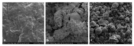 The SEM images of untreated LMLPs (a) and substances defatted by CSE (b) and UAE under optimal conditions (c).