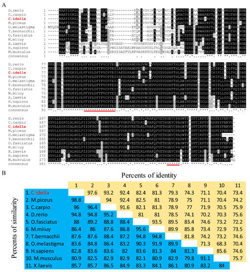 - Zhu, D.; Huang, R.; Yang, C.; Fu, P.; Chen, L.; Jiang, Y.; He, L.; Li, Y.; Liao, L.; Zhu, Z.; et al. Identification and molecular characterization of peroxiredoxin 2 in grass carp (Ctenopharyngodon idella). Fish Shellfish Immunol. 2019, 92, 570–582. [Google Scholar] [CrossRef]