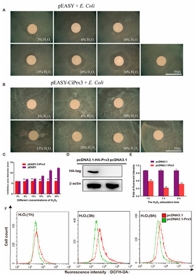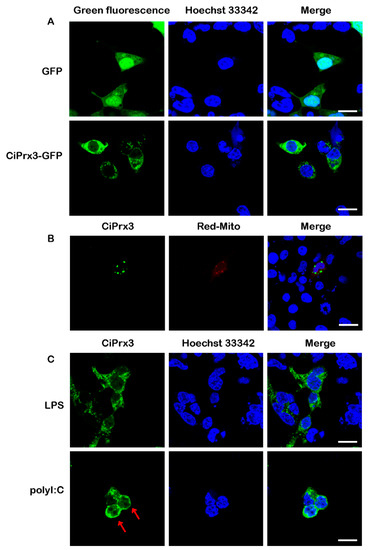 3.3. Subcellular Localization of CiPrx3 Proteins