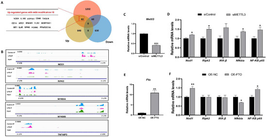 3.4. The NOD1/NF-κB Pathway Was Regulated by m6A Methylation Modification