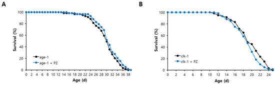 - Johnson, T.E.; de Castro, E.; Hegi de Castro, S.; Cypser, J.; Henderson, S.; Tedesco, P. Relationship between increased longevity and stress resistance as assessed through gerontogene mutations in Caenorhabditis elegans. Exp. Gerontol. 2001, 36, 1609–1617. [Google Scholar] [CrossRef]